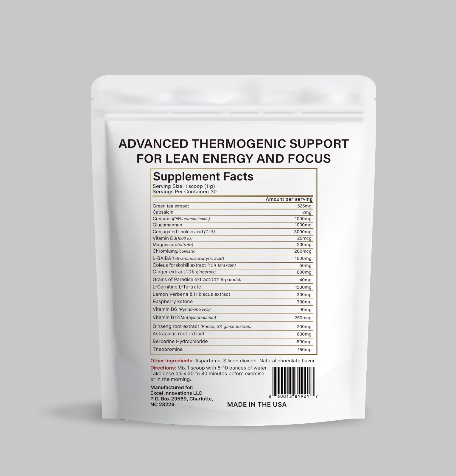 With 21 key ingredients used by athletes, coaches, and everyday people committed to change, this formula helps activate your metabolism, support appetite control, and enhance fat-burning efficiency. Ingredients like green tea extract, CLA, L-Carnitine, capsaicin, and ginger root work together to help your body tap into stored energy, maintain muscle definition, and stay sharp and focused.